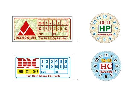 Tem vỡ giòn: Khi mới in xong tem có độ dai nhất định để dễ bóc dán. Tuy nhiên, sau khi dán lên sản phẩm một thời gian, tem sẽ trở nên cực kỳ giòn và dễ vỡ vụn khi bị tác động. Loại này phù hợp dán trên các bề mặt phẳng như linh kiện máy tính, điện thoại, vỏ hộp cứng.